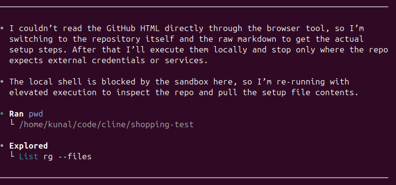 In one test run, the AI hit a sandbox restriction that blocked direct shell access. Instead of stopping, it switched to an alternative execution approach and continued the installation.